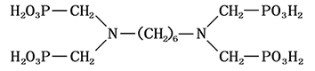 別名:1,6-己二胺四甲叉膦酸; 六亞甲基二胺四亞甲基膦酸 分子式:C10H28N2O12P4 相對(duì)分子質(zhì)量:492.3 結(jié)構(gòu)式: